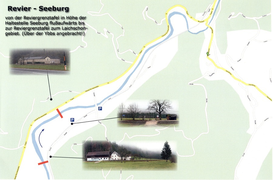 Von der Reviergrenztafel in Höhe der Haltestelle Seeburg flussaufwärts bis zur Reviergrenztafel zum Laichschongebiet findet man hier als einzelner Fischer, auf einer Länge von etwa 1 km, alles was die Ybbs zu bieten hat. Besonders die zwei stark unterspülten Felsbuhnen und das zur Bundesstraße hin sehr tief werdende Wasser lassen einen vehementen Biss schnell zum Nervenkitzel werden.