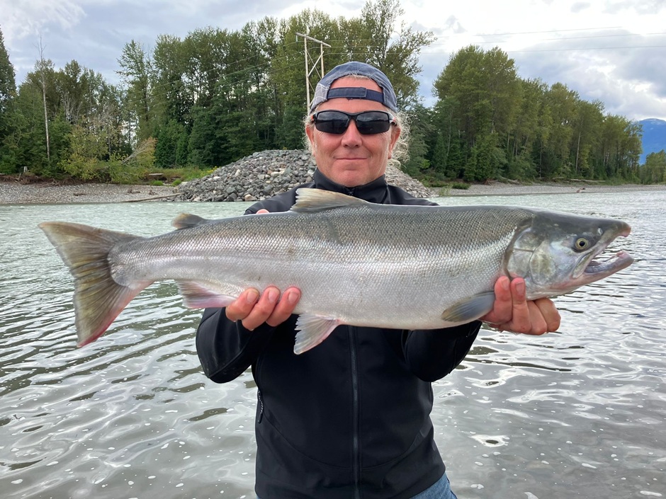 Silberlachs/Coho-Lachs (Oncorhynchus kisutch) – Coho-Lachse werden aufgrund ihrer besonders silbernen Haut auch als Silberlachse bezeichnet. Sie haben hellrotes Fleisch und eine etwas feinere Textur als der Königslachs, ist diesem im Geschmack aber ähnlich. Die Fischereibetriebe von Alaska sind am Weltmarkt die größten Silberlachslieferanten.Der Silberlachs wird bis zu 100 cm lang und erreicht Gewichte bis 10 kg. Im Meer lebend weisen beide Geschlechter vergleichbare Färbungen auf. Sie sind am ganzen Körper silbergrau (nur der Bauch ist weiß) und weisen schwarze Punkte an Rücken und der oberen Schwanzflosse auf. Wenn die Lachse zur Laichzeit in Süßwasserflüsse aufsteigen, verfärben sie sich. Die Seiten werden rötlich, bei Männchen auch der Bauch. Zudem ändert sich die Grundfärbung von silbergrau zu braun. Männchen entwickeln zudem sogenannte Laichhaken. Sein Weißes Maul, grau/schwarze Zunge lässt dich den Fischer gut erkennen. Bei uns ein sehr begehrter Zielfisch sein Fleisch ist von bester Qualität.